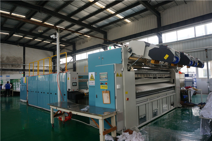 其次就是烘干設備,布草的烘干設備就包括了工業烘干機,主要是用來烘干毛巾臺布這類量的布草,此外,燙平機,燙平機他除了可以熨燙床單被套他在熨燙過程中直接就把床單被套給烘干了,還有折疊機主要是用于折疊床單被套和浴巾。如果您的洗滌廠業務量大的還可以配置一臺送布機和折疊機。